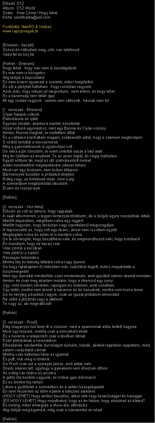 A eminemfiu.fantom.hu/Rap szöveg magyarul!/D-12/ könyvtár tartalma: