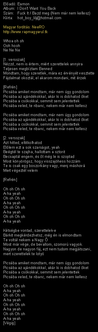 A eminemfiu.fantom.hu/Rap szöveg magyarul!/Eamon/ könyvtár tartalma: